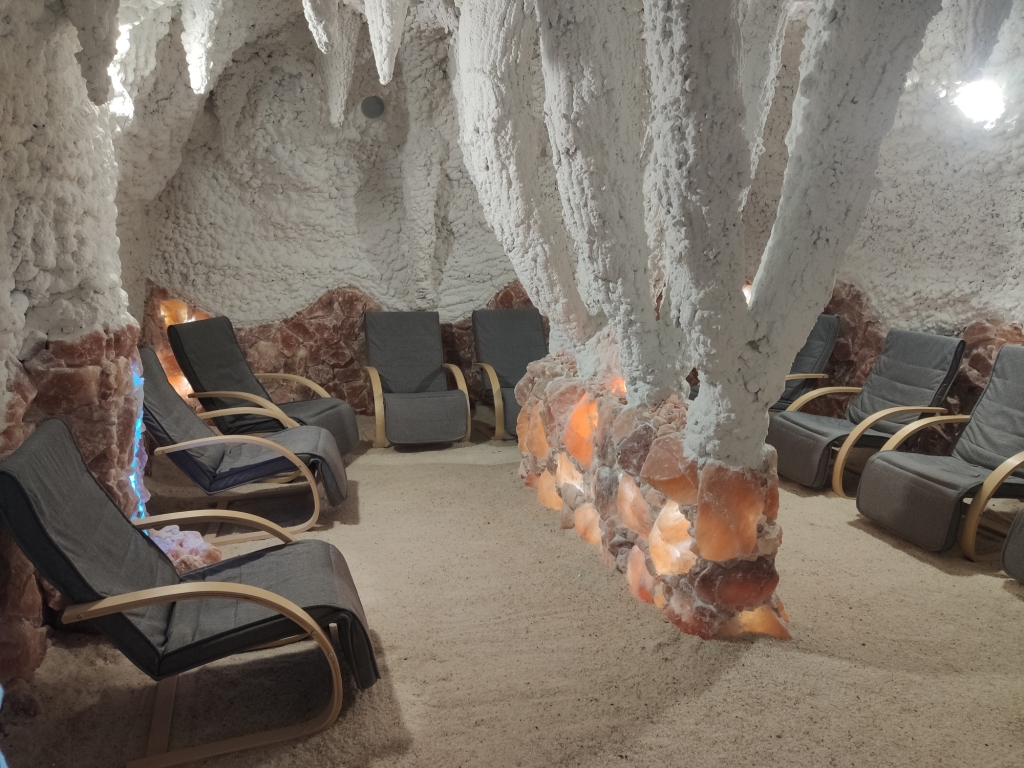 Соляная пещера представляют собой специально созданную комнату, облицованну натуральной солью. Воздух внутри этого помещения насыщен минералами и отрицательными ионами, которые положительно влияют на дыхательную систему и кожу человека. Посетители проводят время в таких пещерах, дышат чистым и очищенным воздухом, а также получают уникальные целебные свойства минералов.